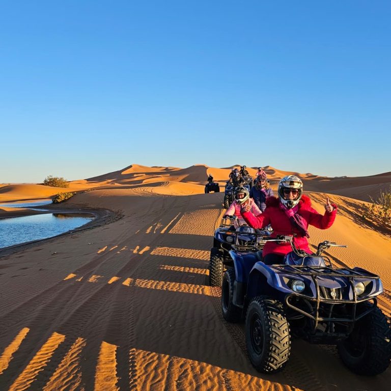 Vive la adrenalina con una emocionante excursión en quad por el desierto marroquí. Esta actividad única te permitirá explorar las dunas y paisajes impresionantes mientras disfrutas de un recorrido lleno de aventuras. Con nuestros guías expertos, tendrás la oportunidad de hacer una travesía inolvidable, manejando a través de las suaves colinas de arena y contemplando la belleza natural que solo el desierto puede ofrecer.